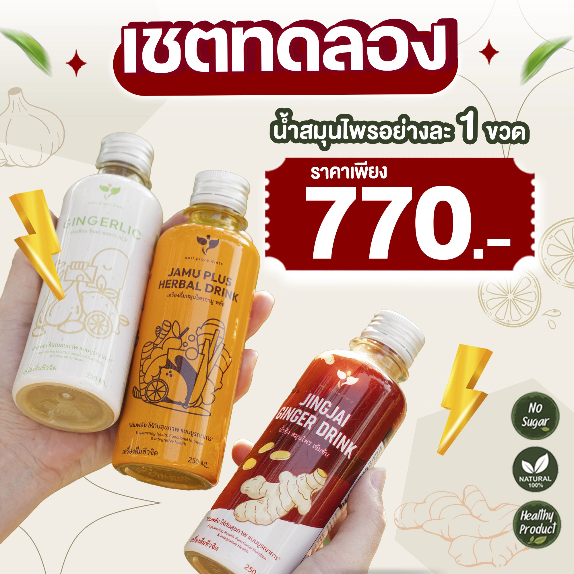 เซ็ตทดลอง Jamu (1 ขวด)+Gingerlic (1ขวด)+JingJia (1 ขวด)